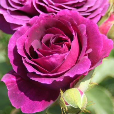 Le rosier Mystérieuse est un rosier buisson à grandes fleurs de couleur violet foncé, et au parfum envoutant.